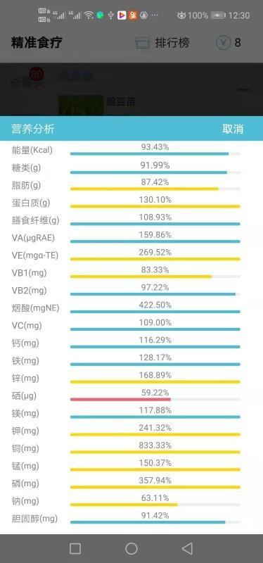 5、打开营养分析,更好的了解食物的营养情况,让用户更好的进行选择