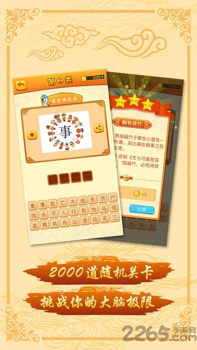 诸葛成语内购破解版是一款非常益脑的手机单机游戏,考验玩家对中国文化了解多少,需要开动脑筋思考,绝对让你百玩不厌,操作相当简单,喜欢的话就来2265安卓网网络安全组!